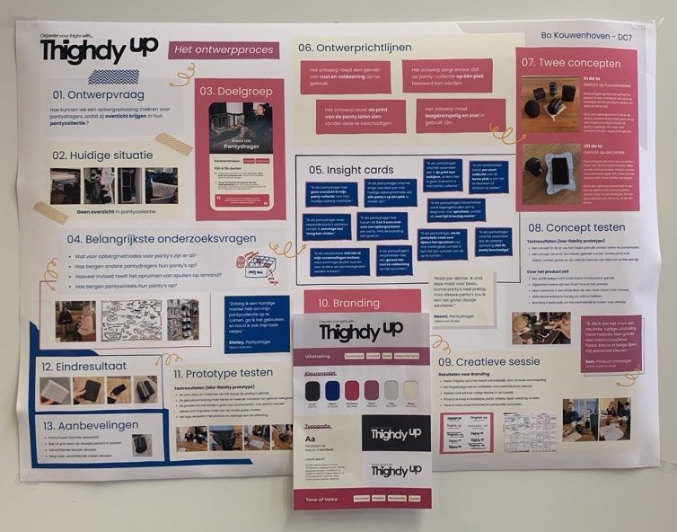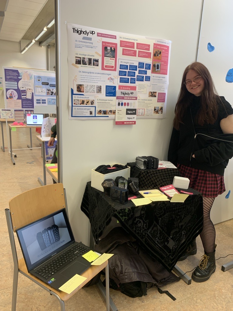 In dit project was ik een allround designer. Dit is een soloproject, waarin ik in mijn eentje het gehele ontwerpproces via de Connect Concept Create methode doorliep. Ik genoot het meest van het uitvoeren van interviews, de creatieve brainstormsessie met de doelgroep, het ontwerpen van het prototype in 3D programma Tinkercad en het ontwerpen van het merk Thighdy up. Het betrekken van de doelgroep bij mijn project is ook essentieel geweest om een naadloos passende oplossing te creëren voor de doelgroep.