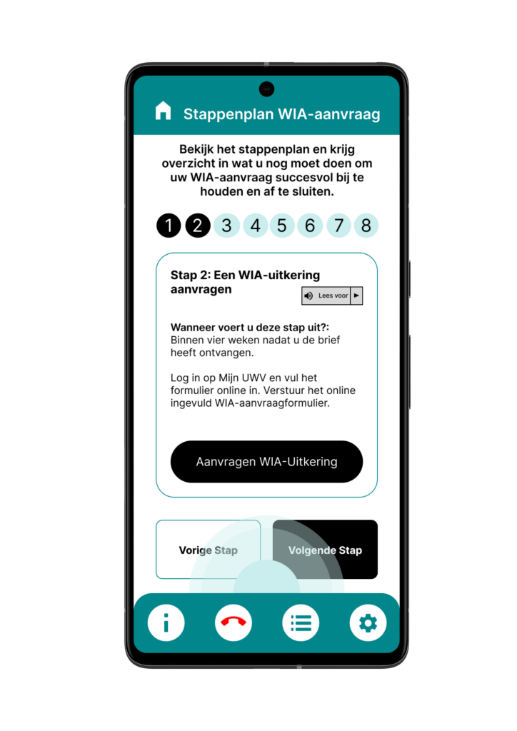 Uit de brainstormsessies kwam naar voren dat ons eindproduct een virtuele assistent en stappenplan moest bevatten met daarbij aanpasbare toegankelijkheidsfuncties.